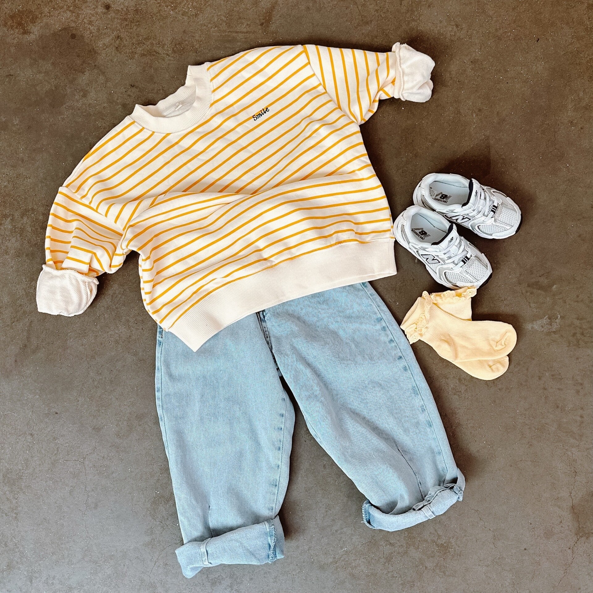 Oversized streepjessweater met "SMILE" op geborduurd.
